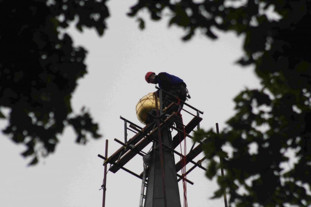 Usazení báně na věž kostela 2.9.2010